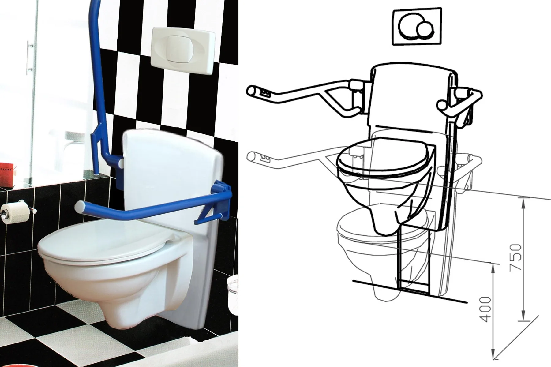 Die Lift Toilette Care ist eine Erweiterung des Modells ForAll und bietet neben den Vorteilen eines klassischen Lift-WCs zusätzliche Barrierefreiheit. Durch die Anbringung gefederter und äußerst stabiler Stütz-Klapp-Griffe mit integrierter Steuerungstastatur wird der selbstständige Gang zur Toilette ermöglicht.