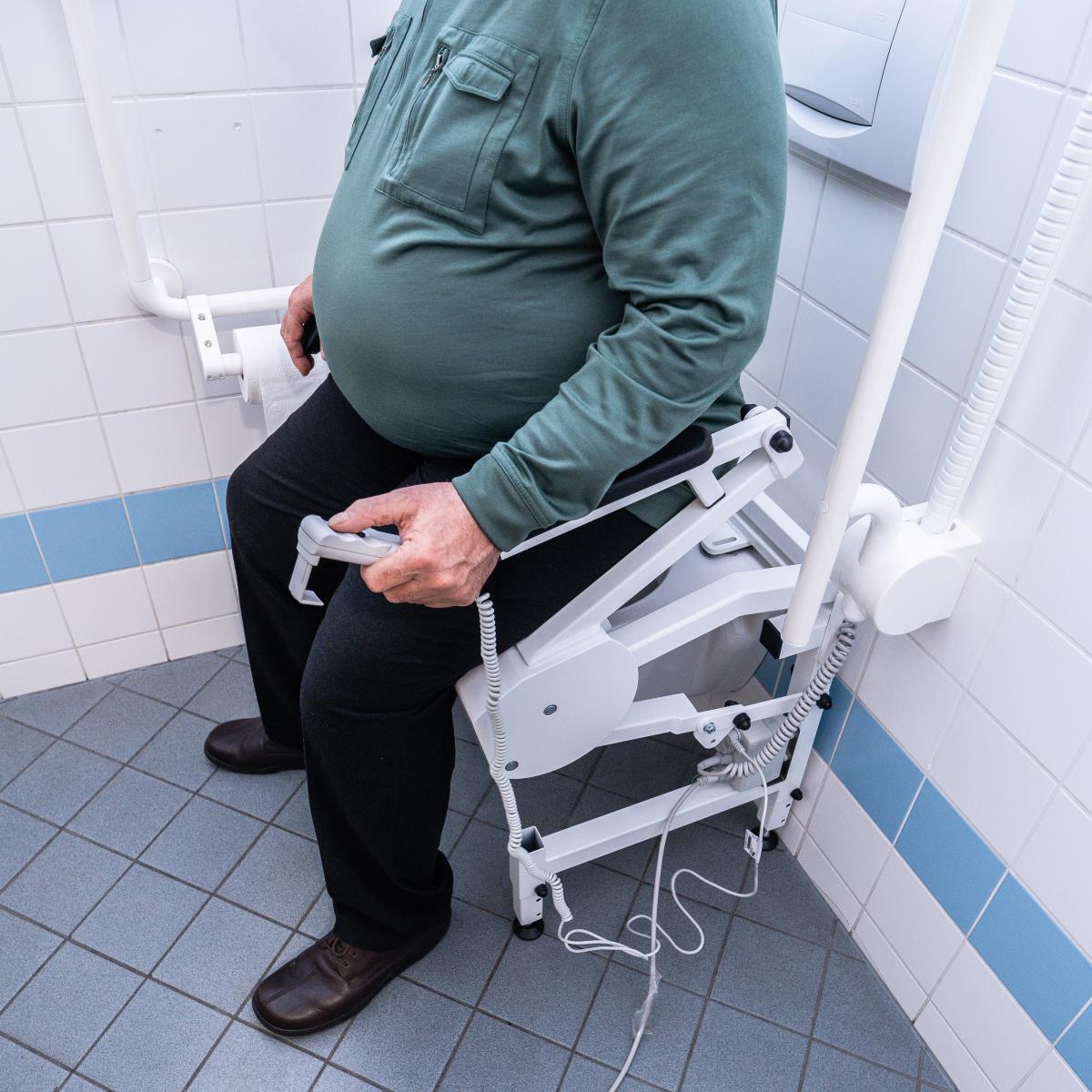 bedienung einer wc-aufstehhilfe r2dfx im bad, höhenverstellbarer neigungswinkel, elektronischer toilettenlift